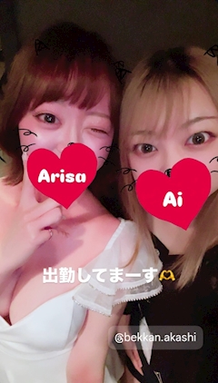 こんばんは🌙* :゚ 明石別館🔮アイです 今日は暖かかったですね〜🌸 夜もいい感じに暖かい☺️ 今日明日、出勤してます(*´◡`) お待ちしております🫶 今日はありさちゃんと♡パシャリ📸